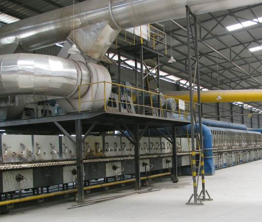 熔塊車間主設備——熔塊爐(熔塊爐是馬蹄窯,結構有一定特殊性,其高溫廢氣的脫硝需要具備較高的技術水平!我司對熔塊爐廢氣脫硫脫硝有豐富經驗):
